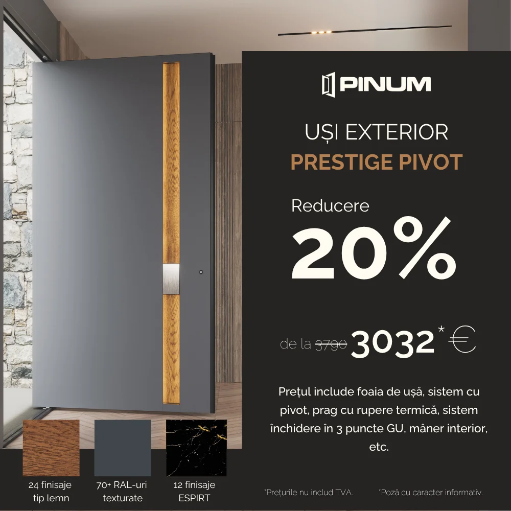Beneficiați de reduceri de până la 30% pentru uși de interior, uși intrare casă și parchet și conturați-vă un spațiu de locuit definit de eleganță și rafinament.
